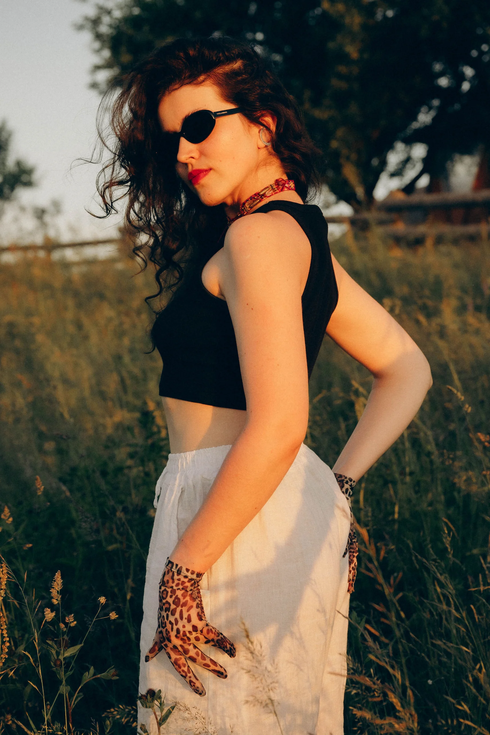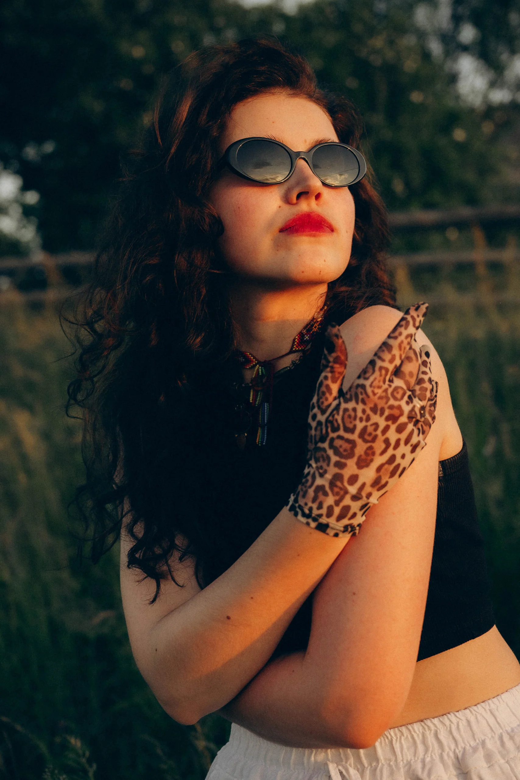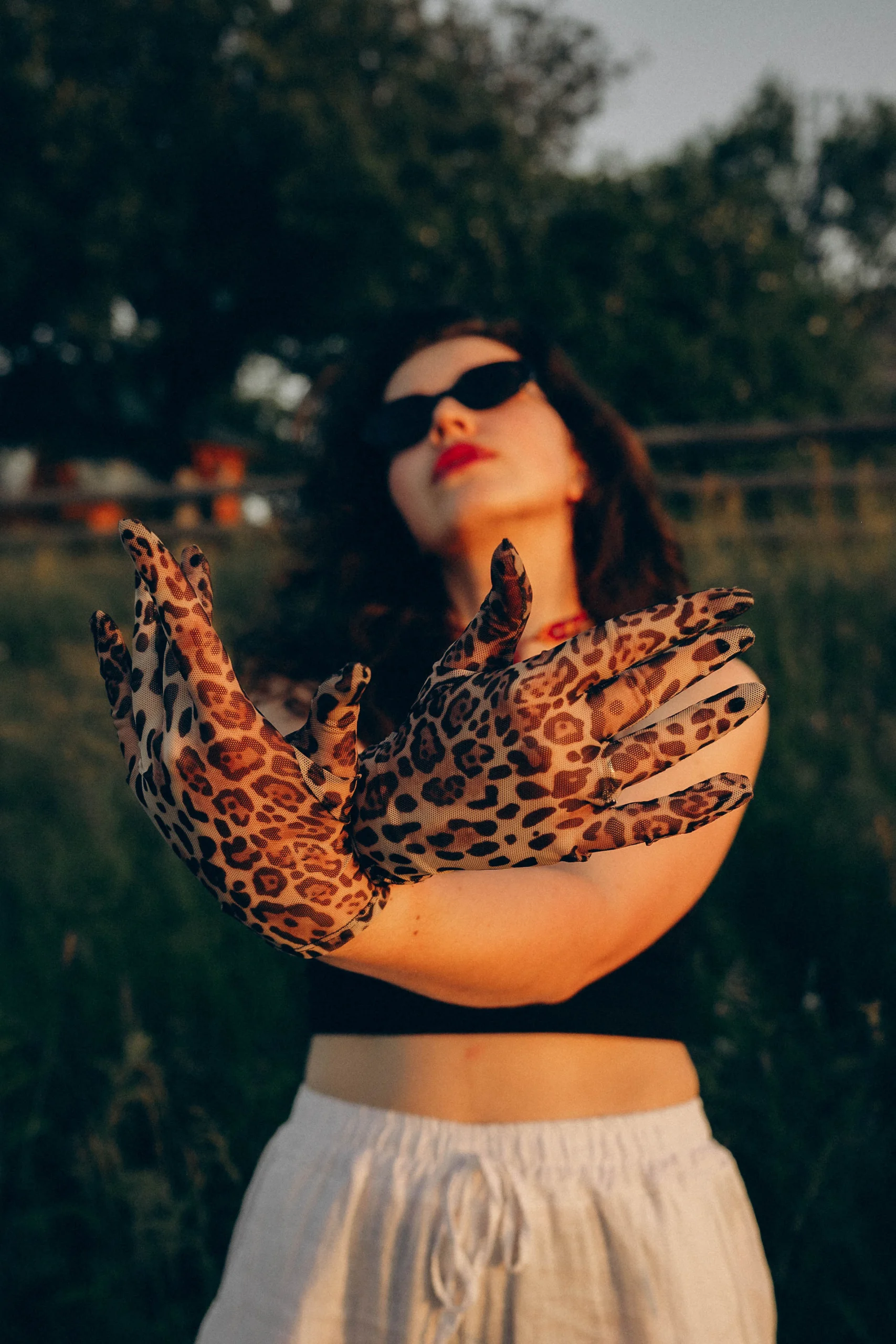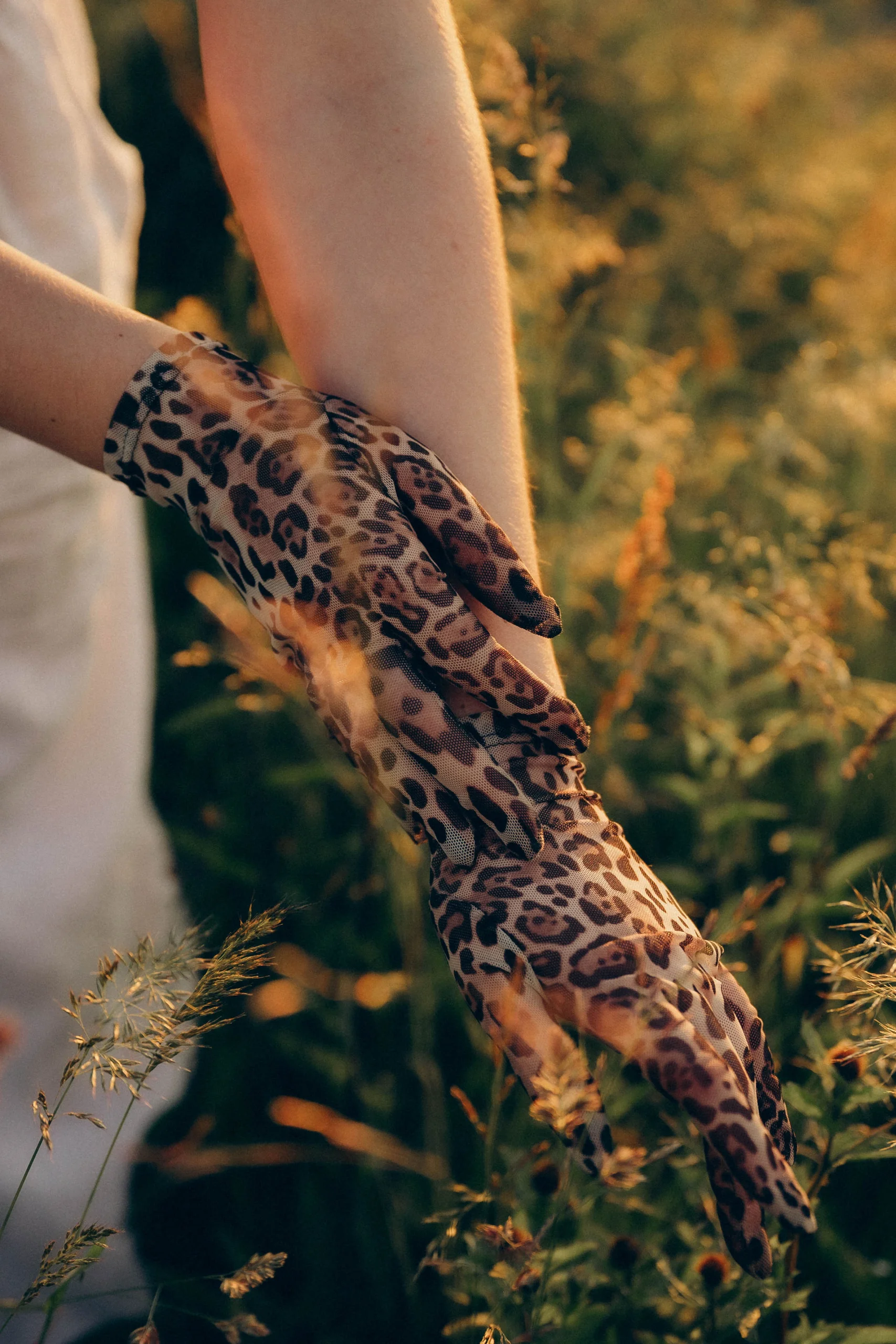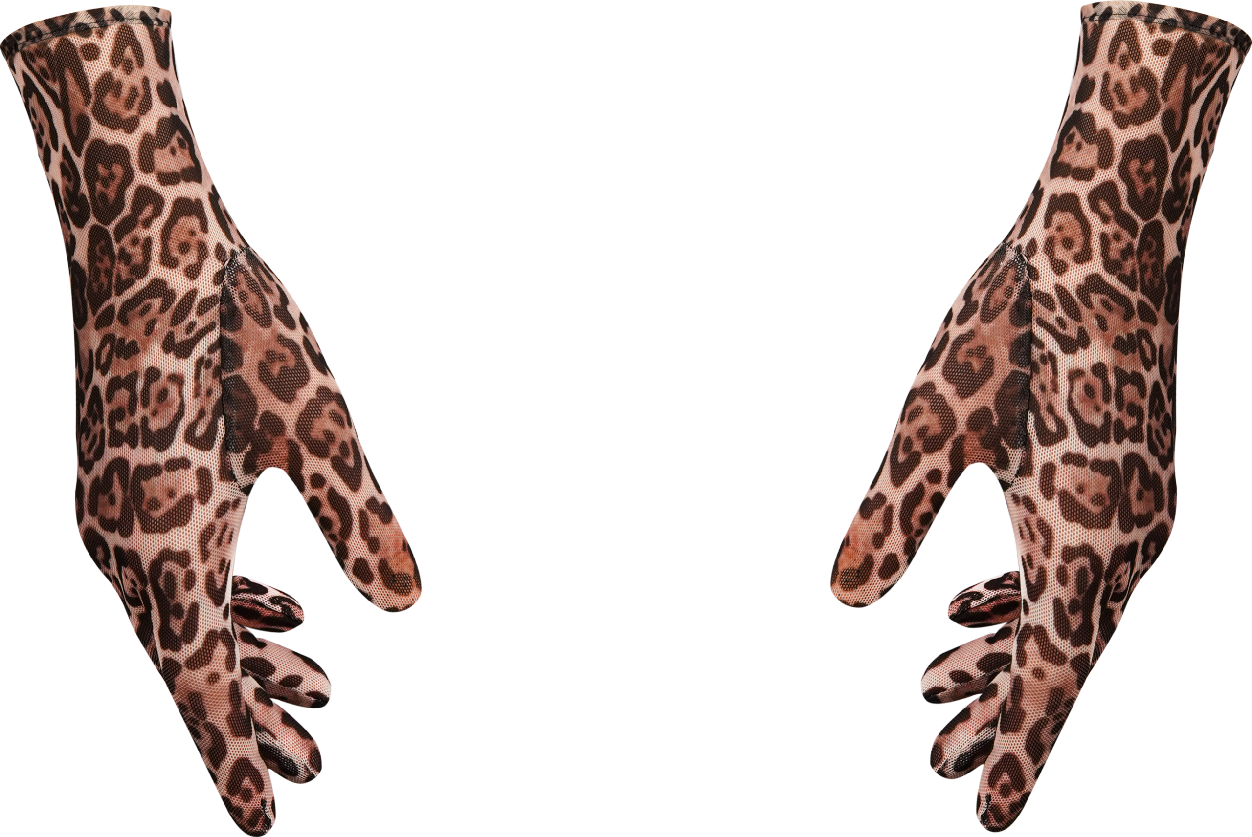 Short and long leopard gloves in elastic mesh.